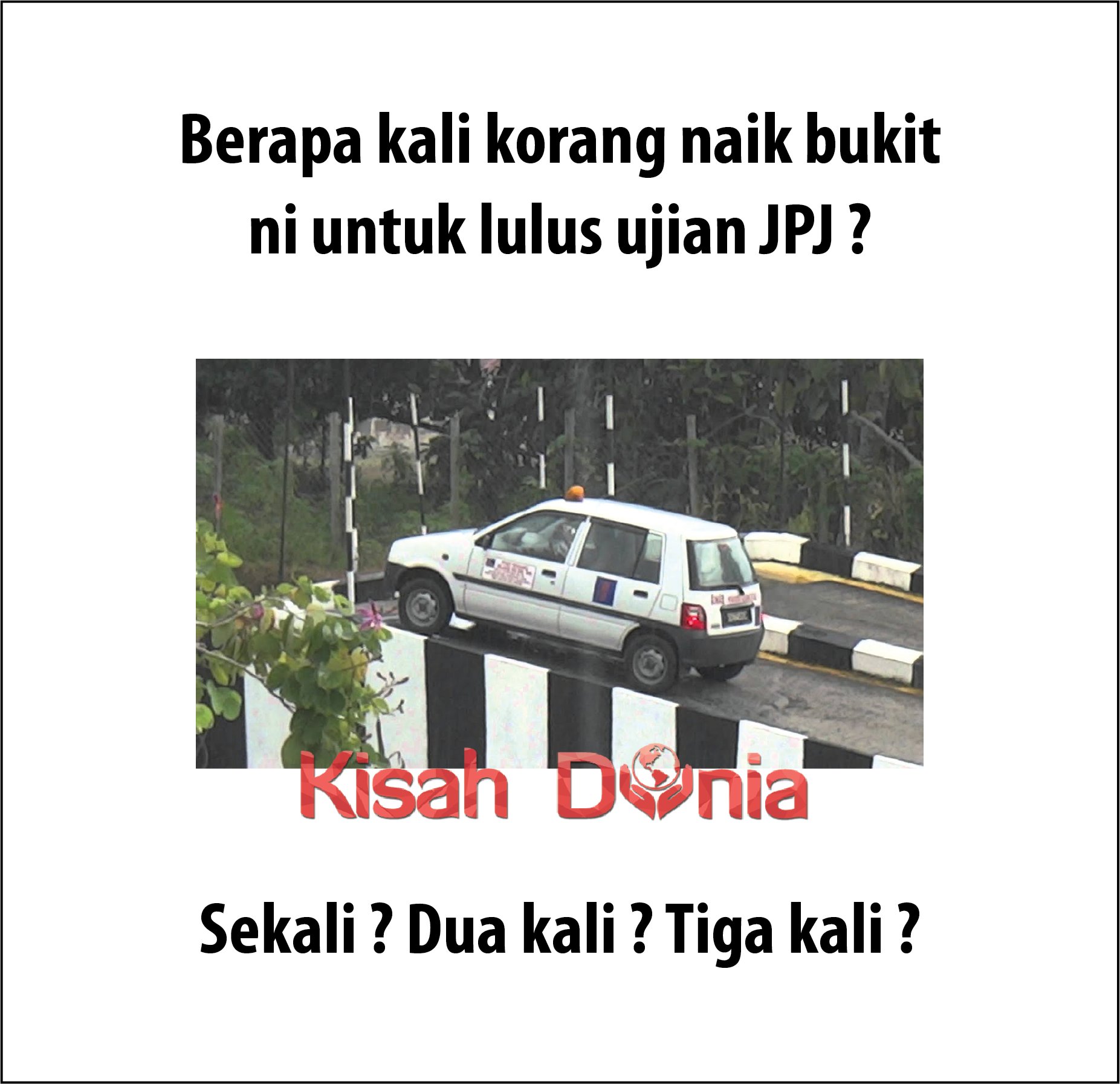 Ada lain sikit senang sikit tapi kena prektis juga untuk master c. Tidak boleh berhenti semasa ujian bermula dari garisan permulaan sehinga garisan kuning puncak bukit. Cara memandu kereta manual naik bukit.